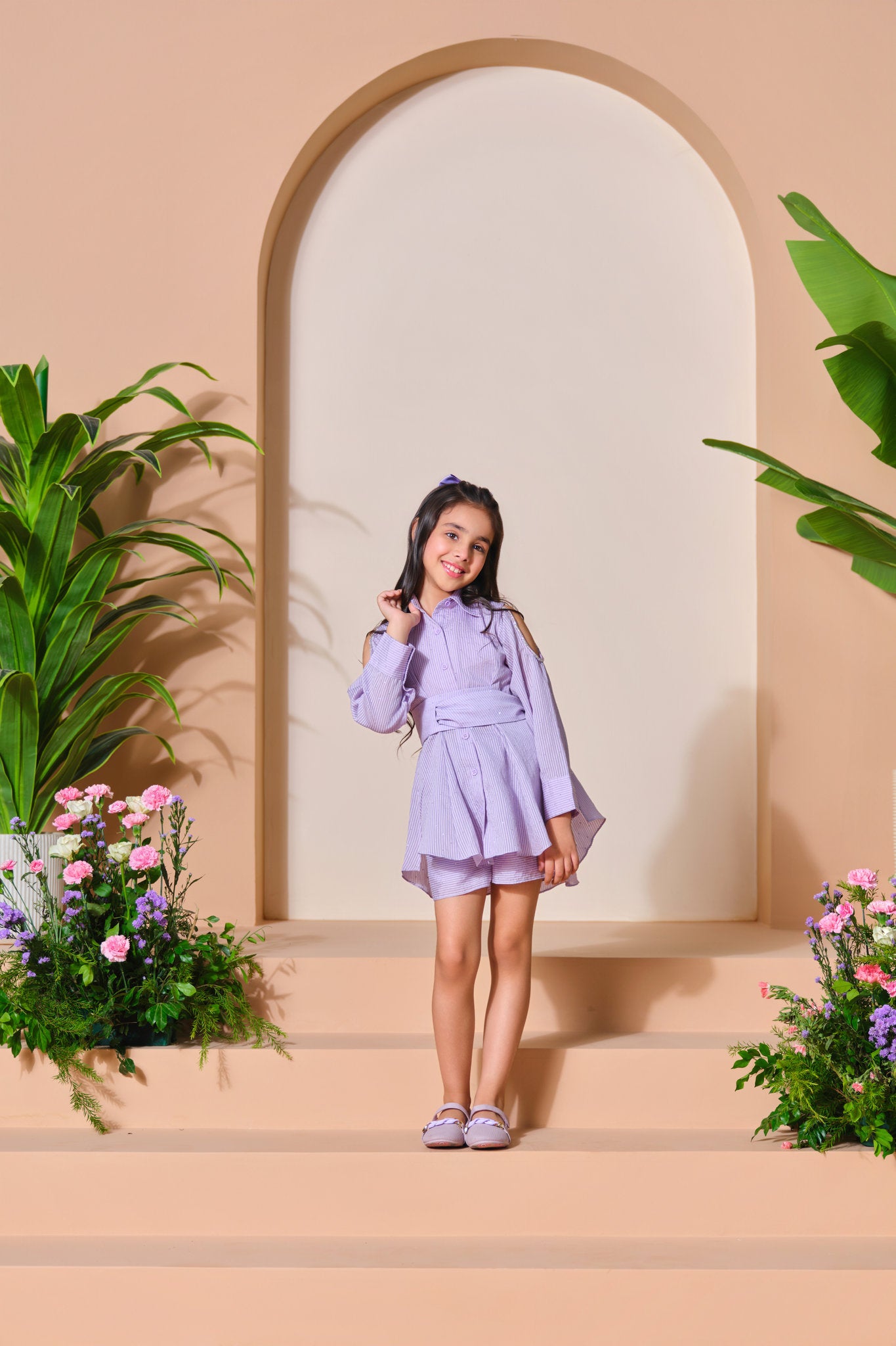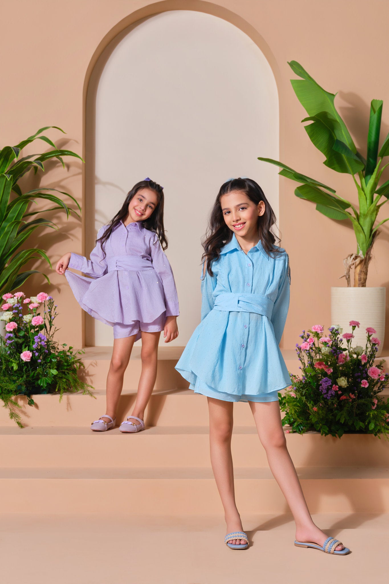 The dress is tailored to perfection with a fitted waist accentuated by a broad belt, creating a flattering silhouette. Its button-up front adds a touch of classic appeal, while the flared volume brings an element of playful elegance. This enchanting dress is a must-have addition to your lil queen’s wardrobe, ensuring she stands out in style all summer long.
