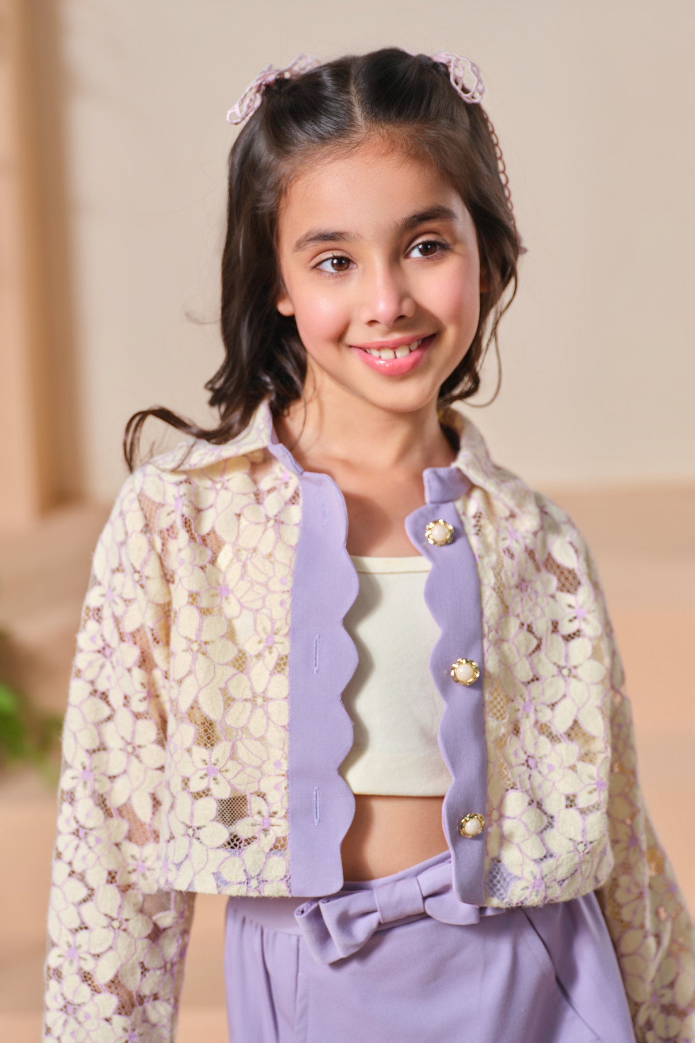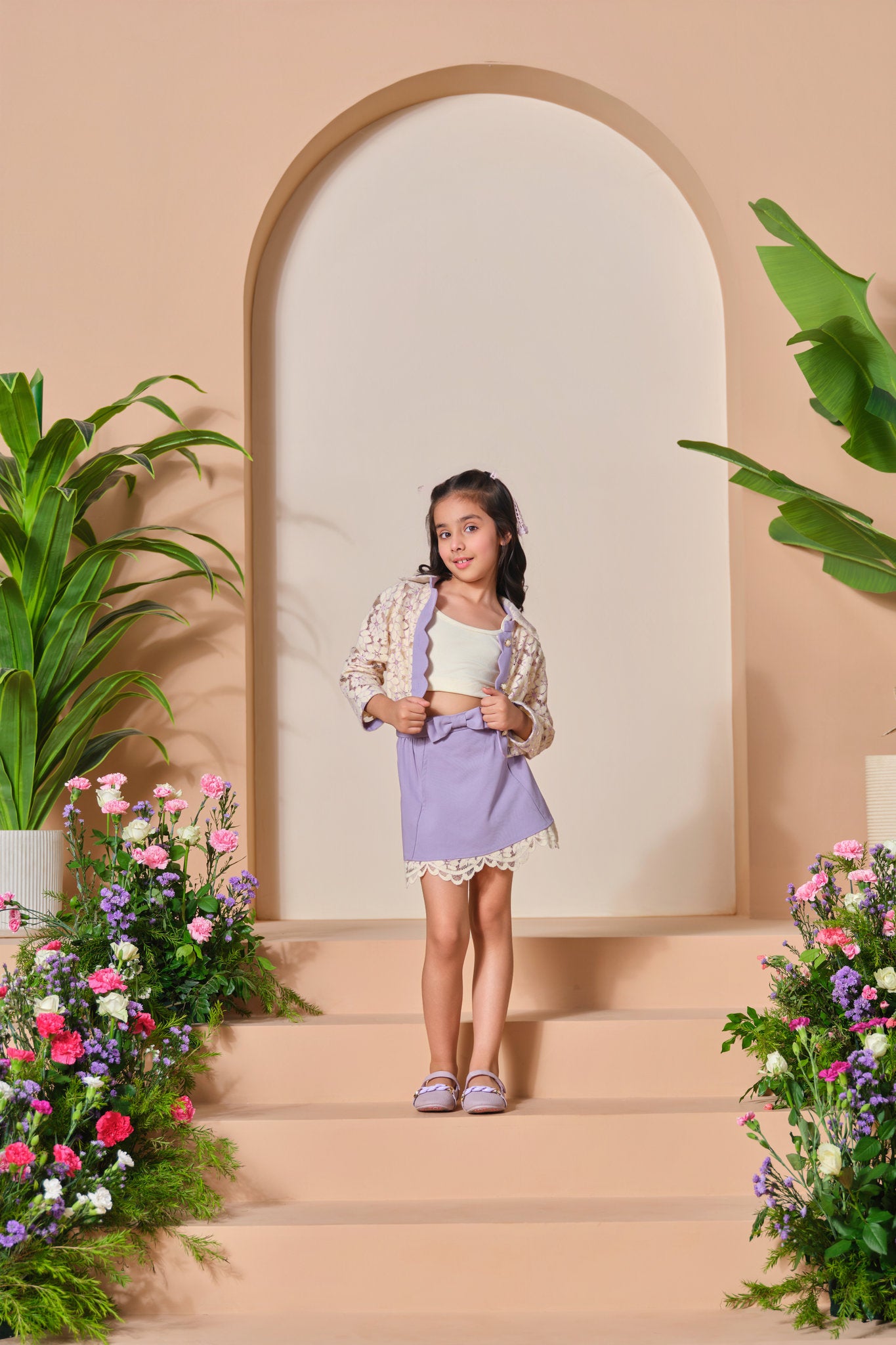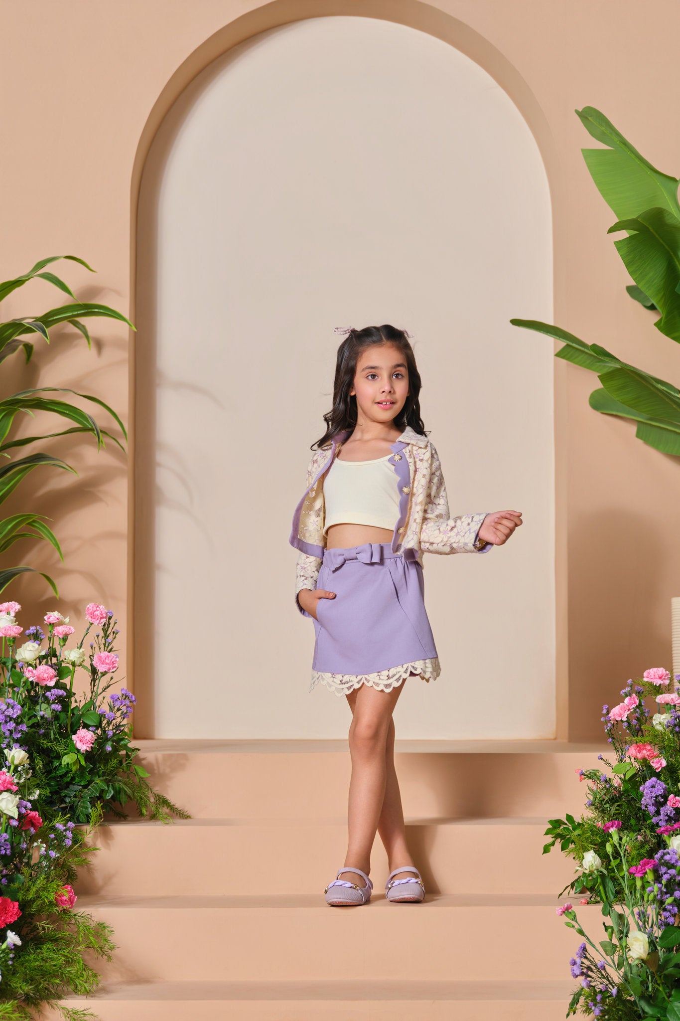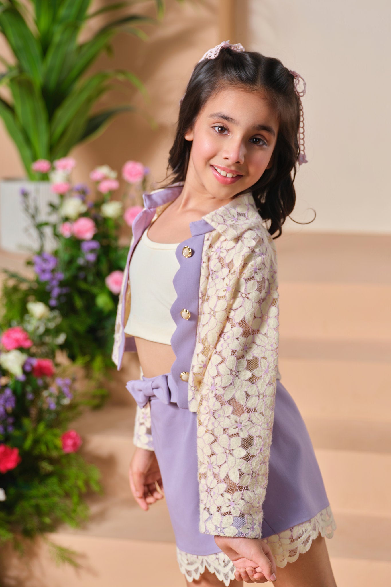 Let your little one step into elegance with our Lavender Lace Charm Co-Ord Set. This adorable ensemble features a delicate blend of soft textures and stylish details perfect for special occasions and fashionable outings.