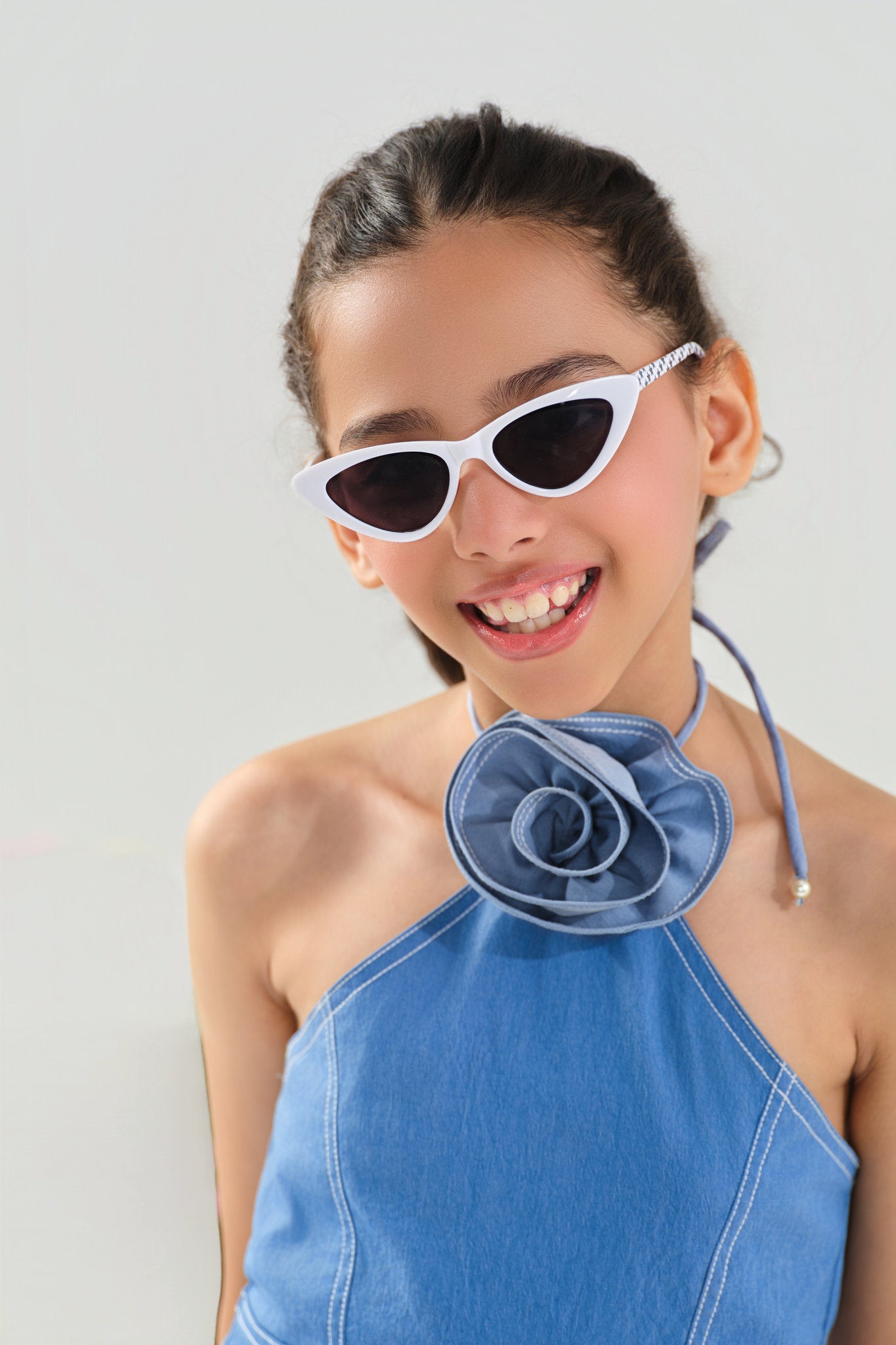 Designed in lightweight, breathable denim, this dress balances comfort with couture-inspired details, ideal for the young fashionista who loves to twirl.